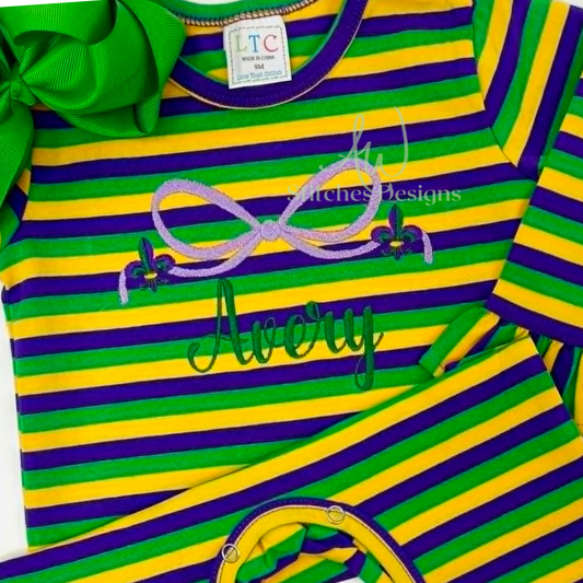 Mardi Gras Fleur de lis satin bow embroidery design