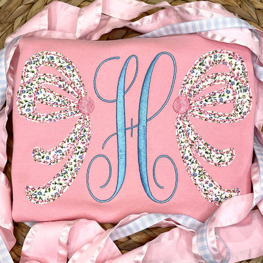 Elegant Classic Bow Appliqué – Satin Stitch Embroidery Design - Sweatshirt Side Bow Applique