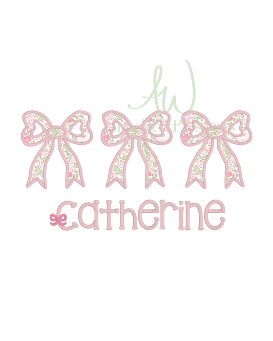 Classic Bow Trio Satin Stitch applique embroidery design file