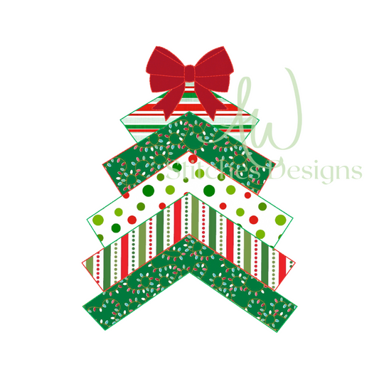 Christmas Tree with Bow Bean Stitch Appliqué Sweatshirt Design for Machine Embroidery design file