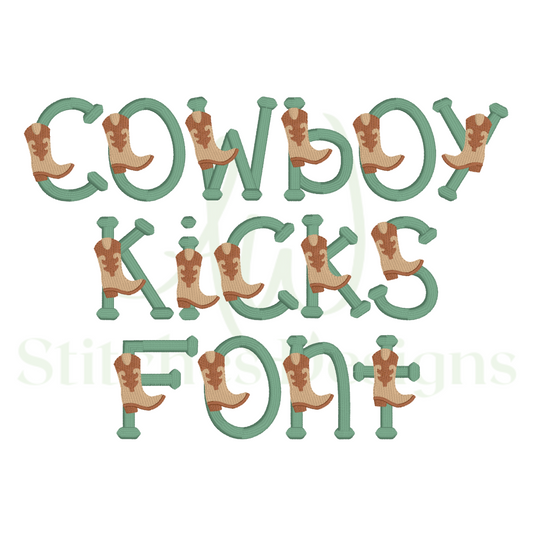 Cowboy Kicks satin stitch font for machine embroidery design file 1"- 2.5" upper and lowercase letters with BX