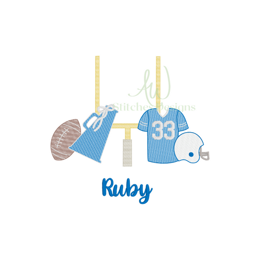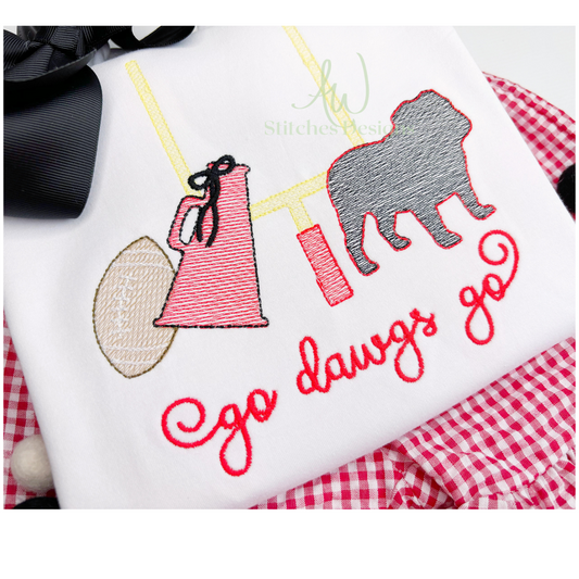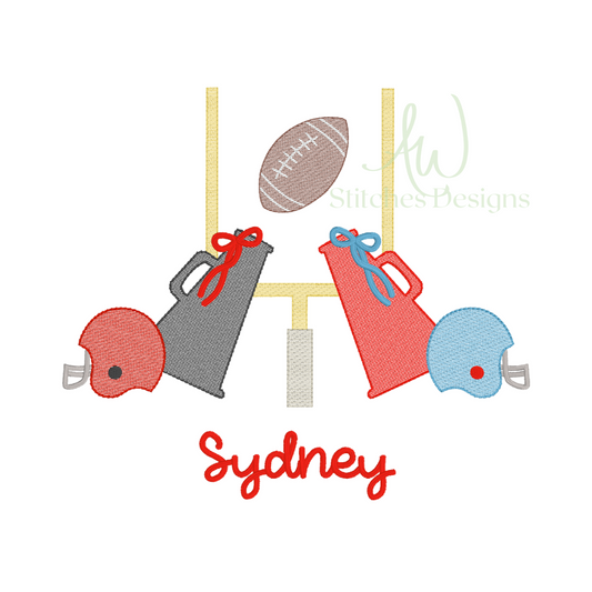 Football Game Day House Divided Cheerleader with bow sketch stitch