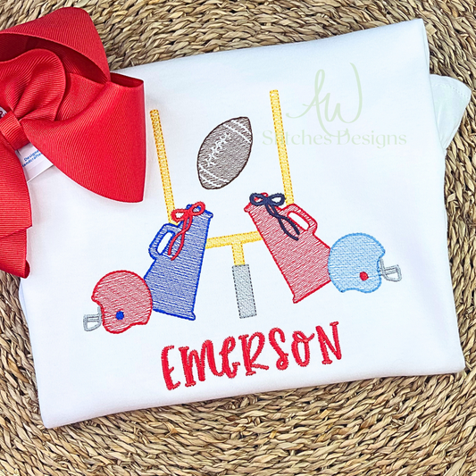 Football Jersey with Bow Cheerleader Trio sketch stitch outline