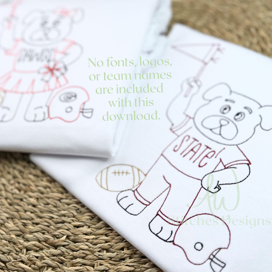 Anchor Football with bow Game Day sketch stitch machine embroidery design file