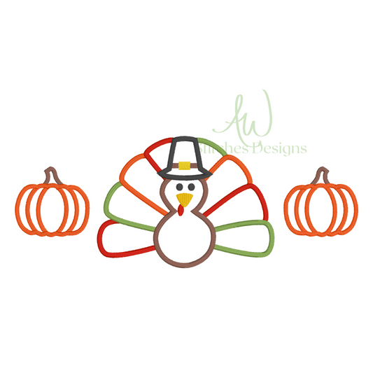 Turkey Pumpkin trio satin outline stitch machine embroidery design file