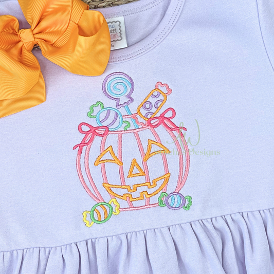 Halloween Trick or Treat Candy Bucket with Bow Satin Stitch - Embroidery Design