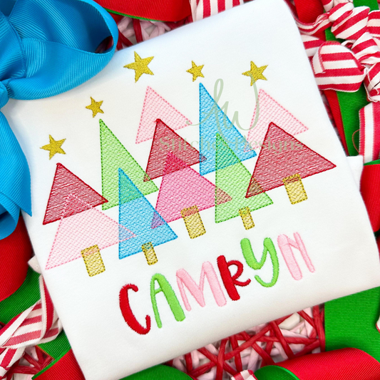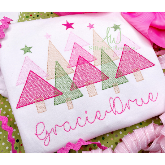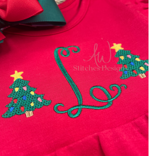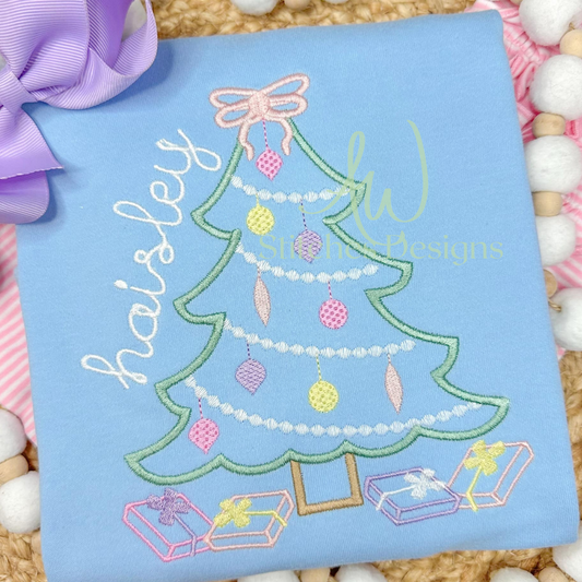 Christmas Tree with bow and presents satin stitch machine embroidery design file