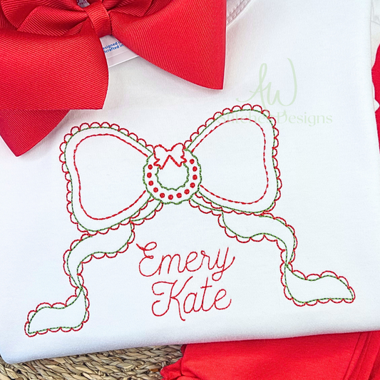Christmas Wreath heirloom bow vintage stitch bean stitch machine embroidery design file