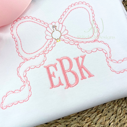 Turkey heirloom bow vintage stitch bean stitch machine embroidery design file