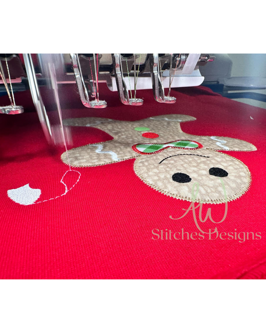 Christmas Gingerbread Girl with bow zig zag applique embroidery design file
