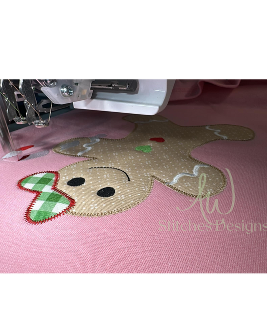 Christmas Gingerbread Boy zig zag applique embroidery design file