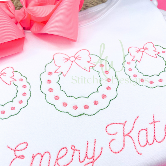 Christmas wreath trio with bow vintage bean stitch machine embroidery design file