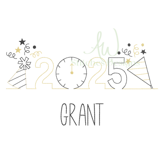 New Year's Eve 2025 line bean stitch machine embroidery design file