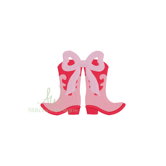 Mini cowboy boots with bow fill stitch machine embroidery mini design