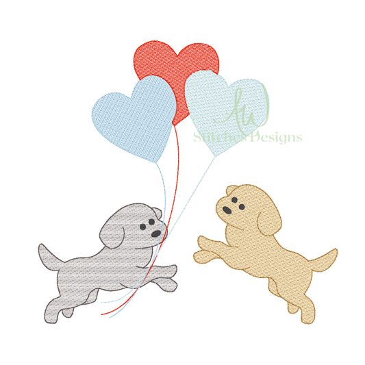 Valentine Puppy Heart Balloon Sketch Embroidery Design