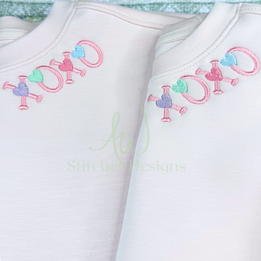 Valentine's Day XOXO heart neckline mini fill stitch machine embroidery design
