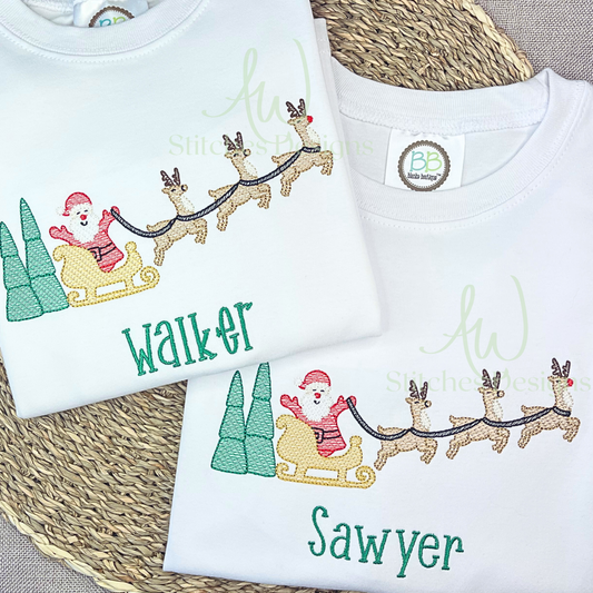 Christmas Santa Sleigh with Reindeer light fill stitch machine embroidery design file