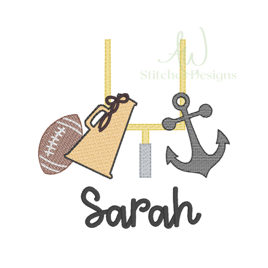 Anchor Football with bow Game Day sketch stitch machine embroidery design file