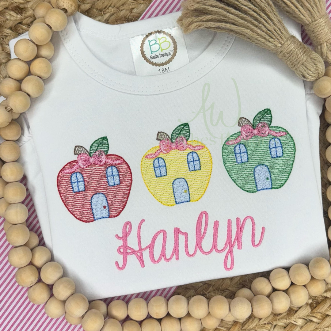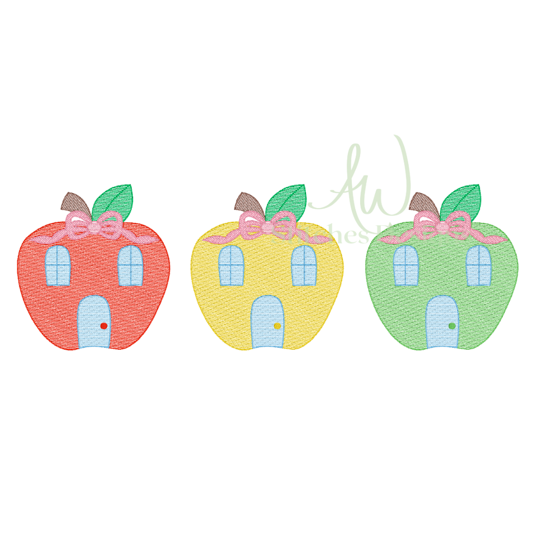 Apple school trio with bow back to school trio first day of school trio sketch stitch light fill stitch machine embroidery design is included in this download.