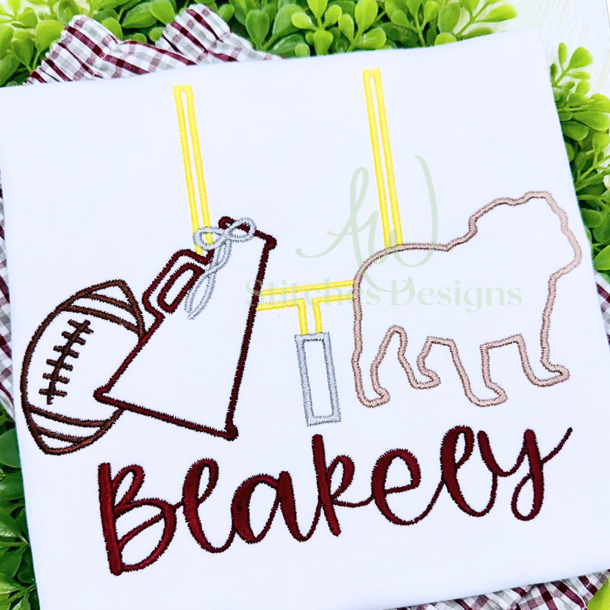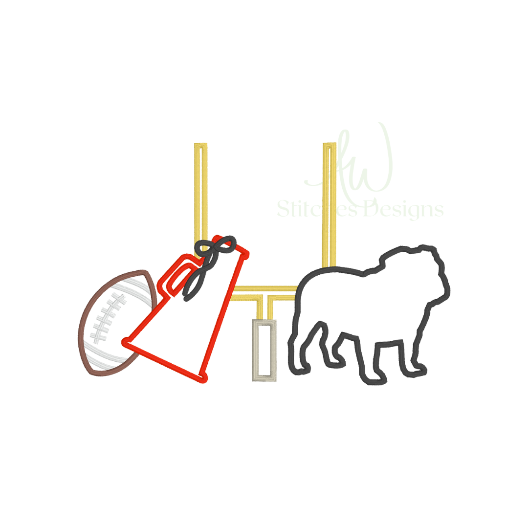 Bulldog Football with bow Game Day Football Megaphone satin stitch machine embroidery design file is included in this download.