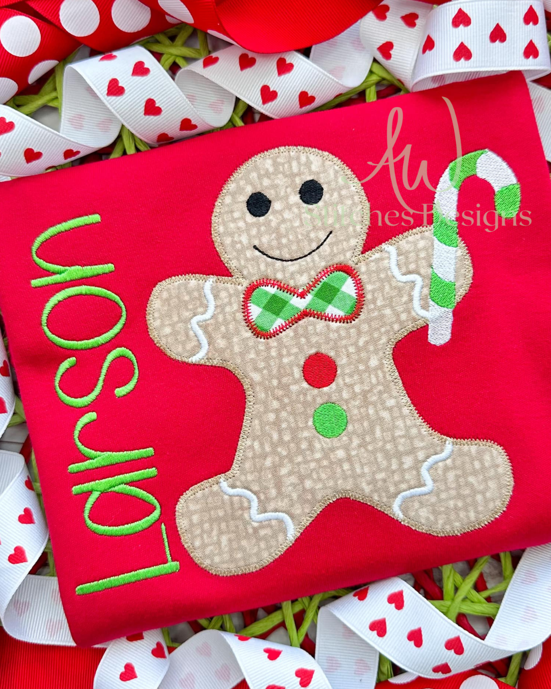 Christmas Gingerbread Boy zig zag applique embroidery design file