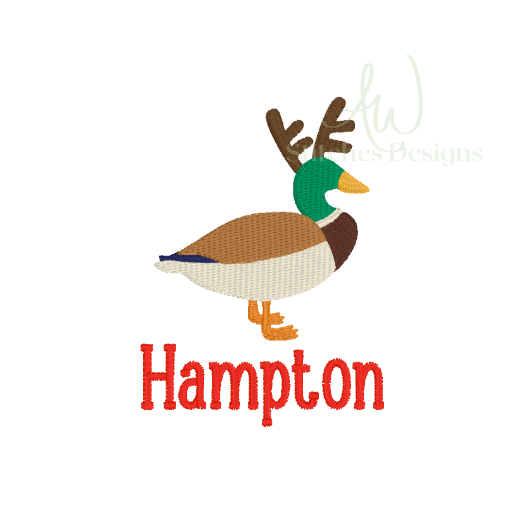 This download includes a Christmas Reindeer Mallard Duck Mini Fill Stitch Embroidery Design File. A font/lettering is not included with this download. This design comes in five sizes: