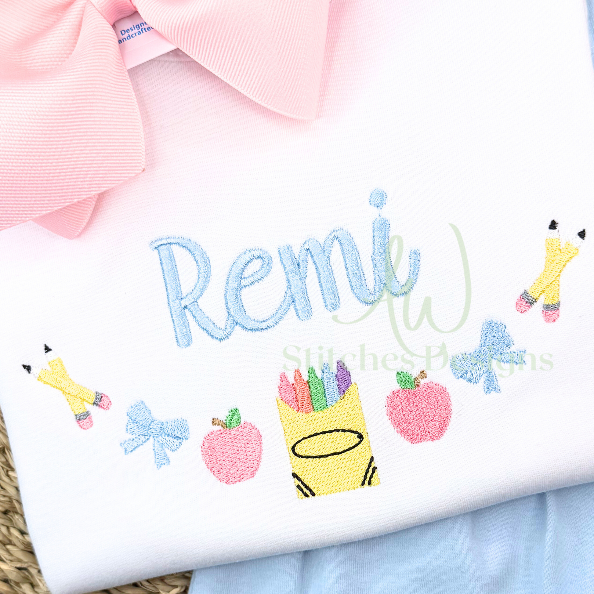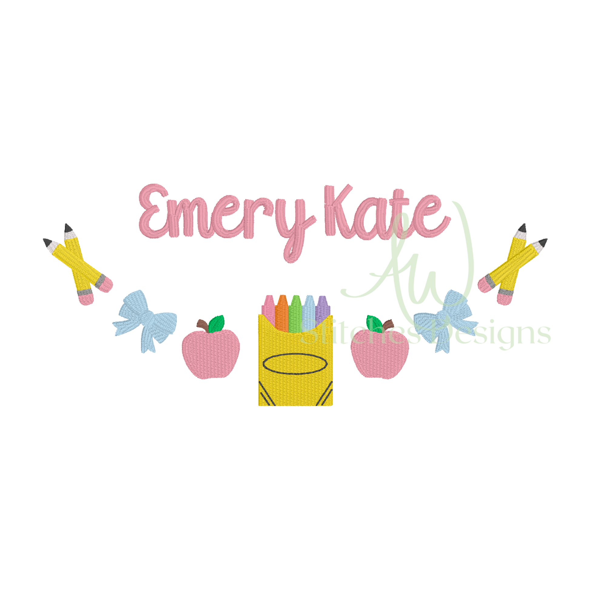 Crayon Box bow monogram frame, First day of school embroidery frame, Back to school monogram satin stitch machine embroidery design file is included in this download.