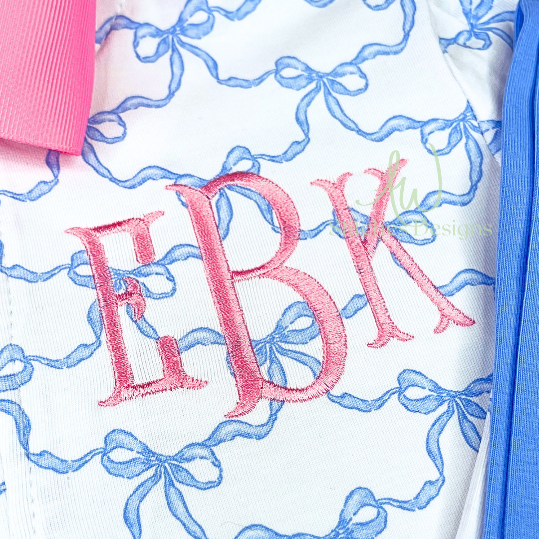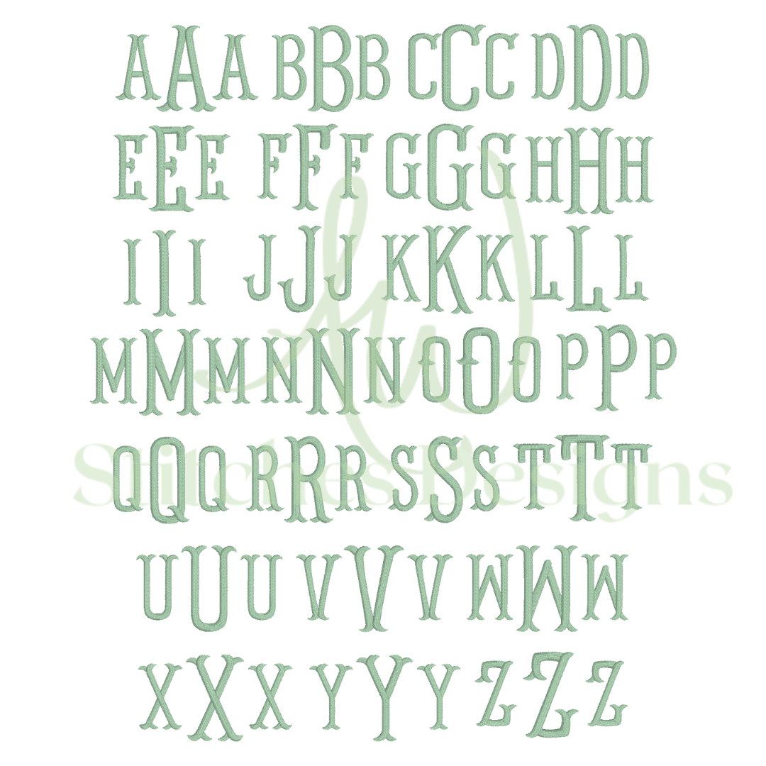 Fishtail monogram satin stitch font for machine embroidery design file 1.5"- 3.5" with BX