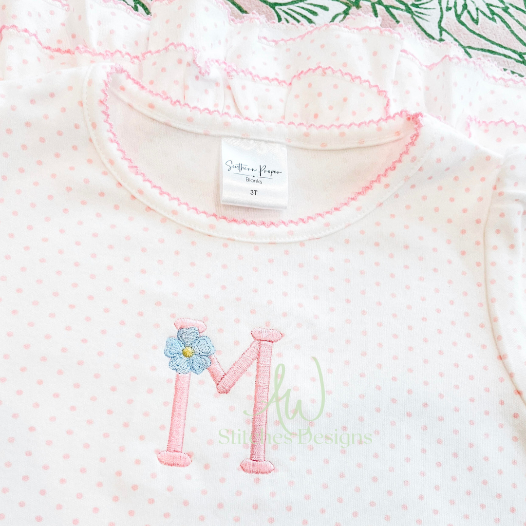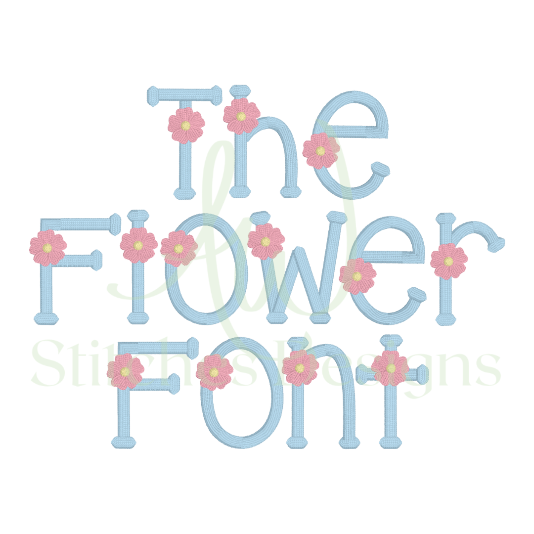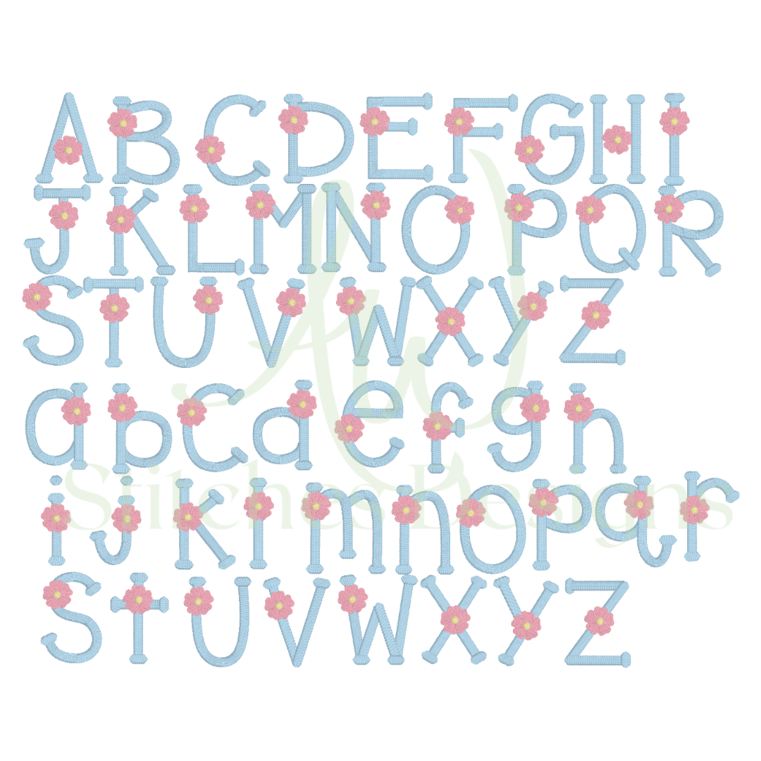 The flower font satin stitch font for machine embroidery design file 1"- 2.5" upper and lowercase letters with BX.