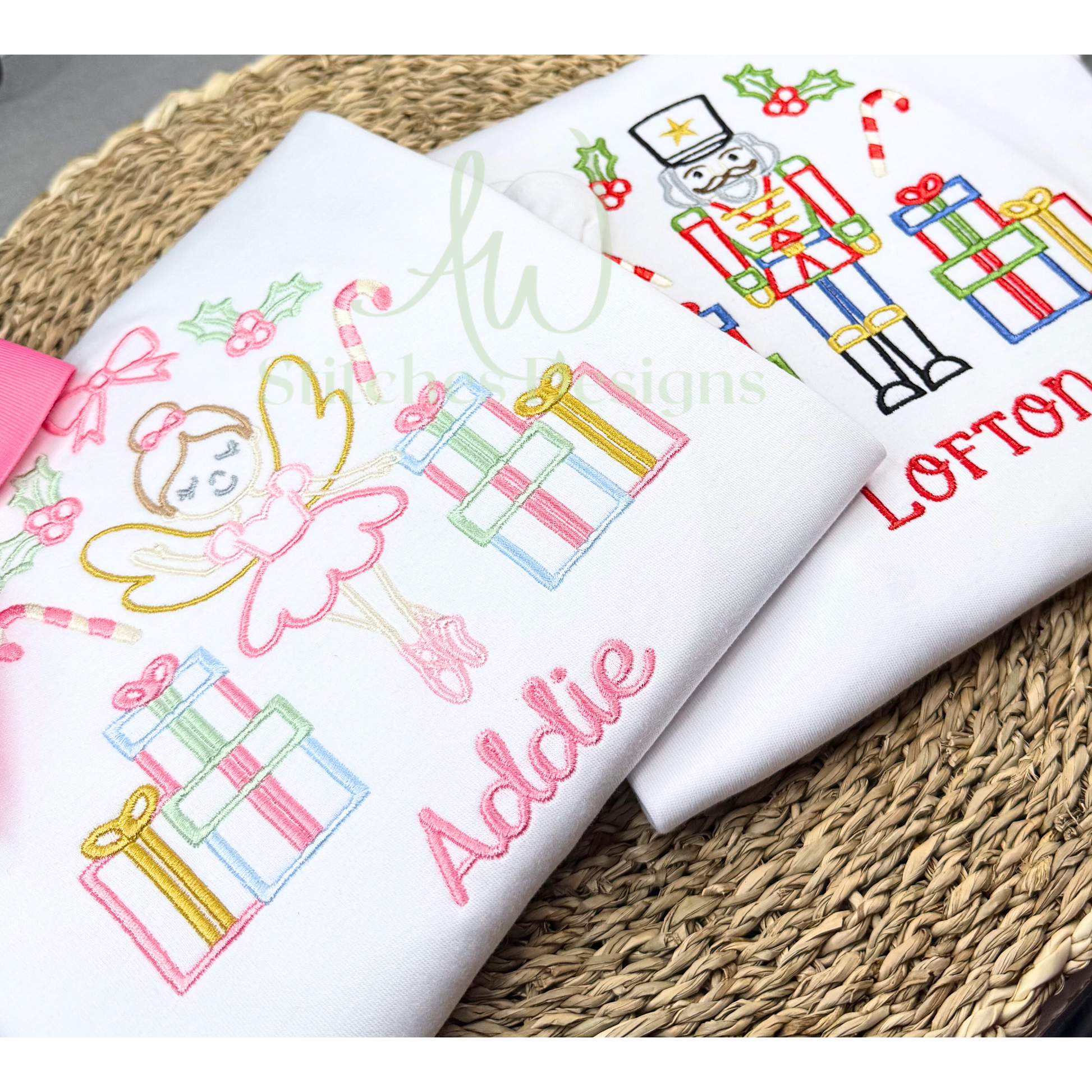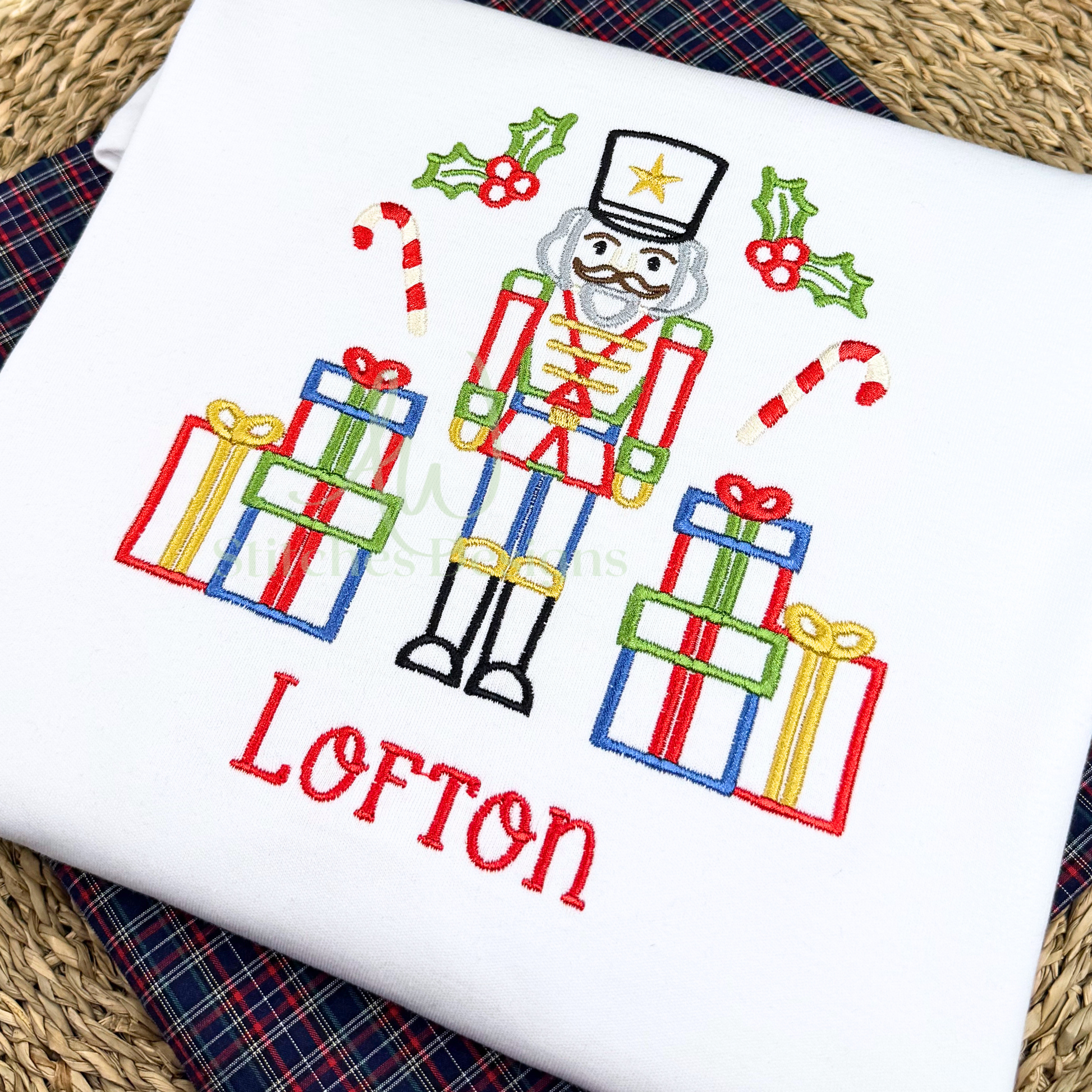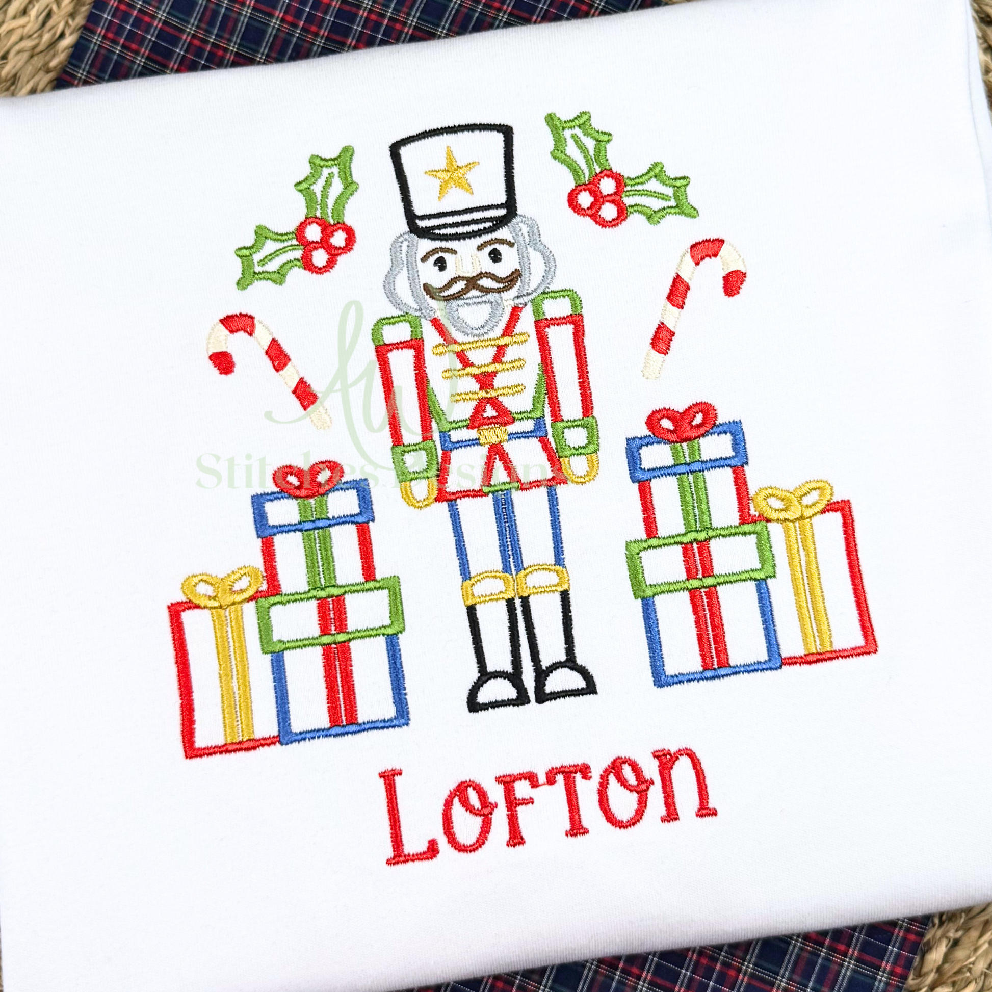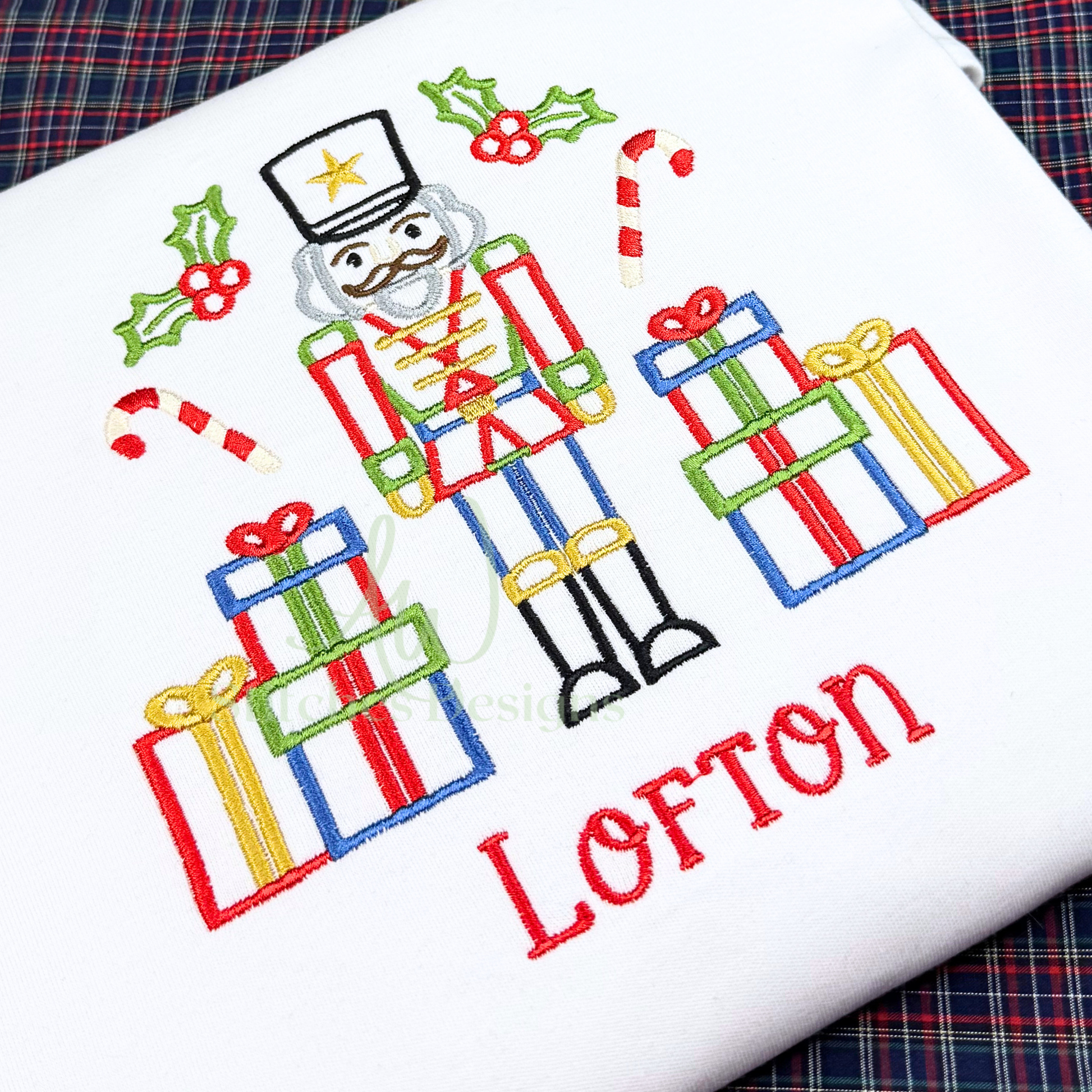 Nutcracker with Christmas presents satin stitch machine embroidery design file