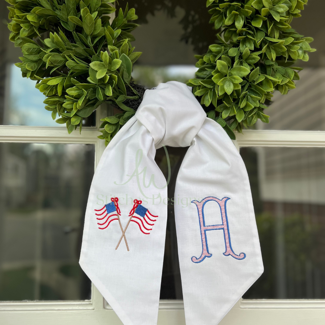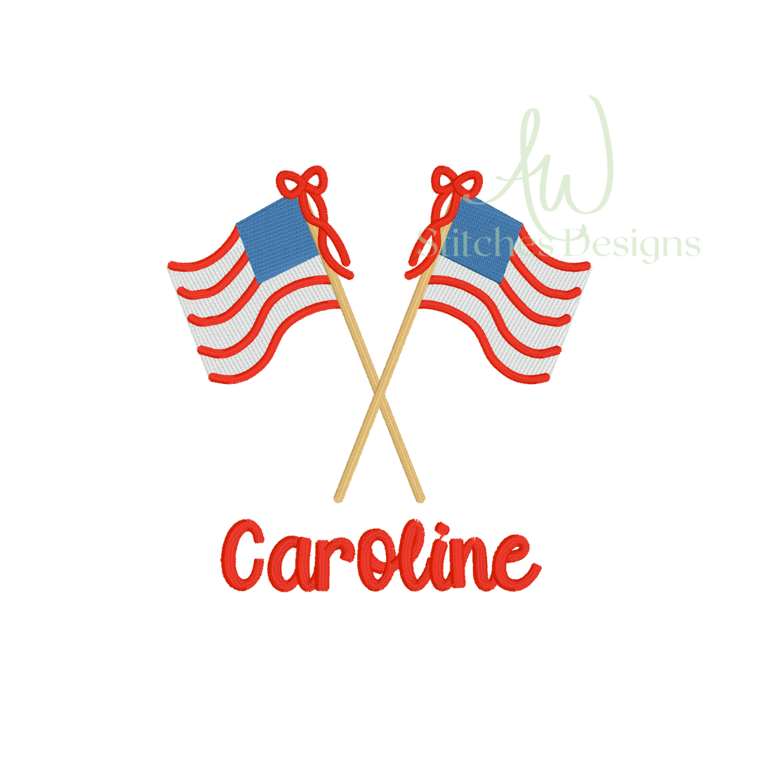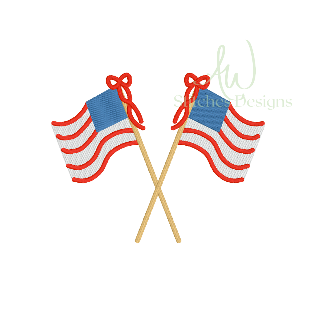 Patriotic American Flags with Bow Satin Stitch Embroidery Design is included in this download.