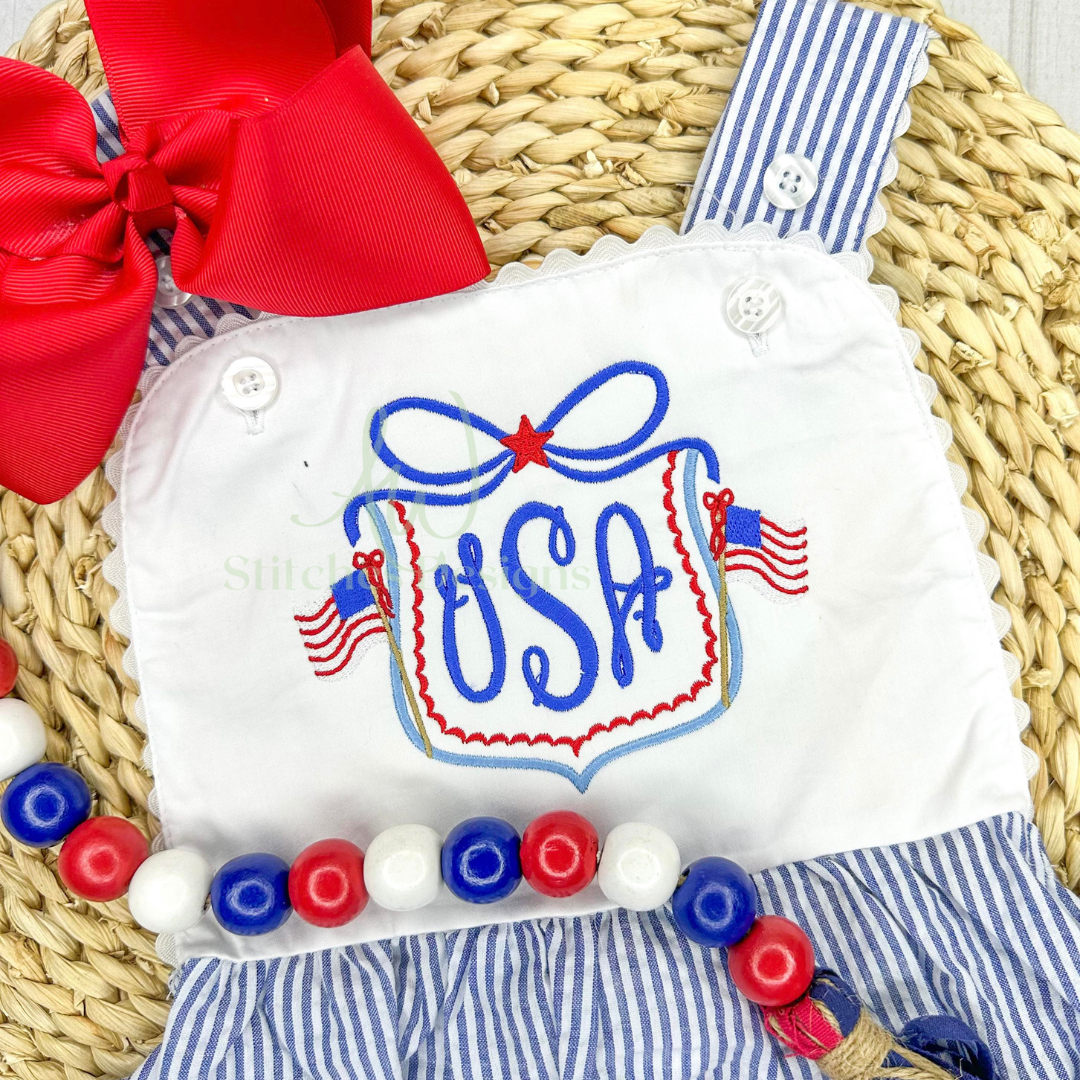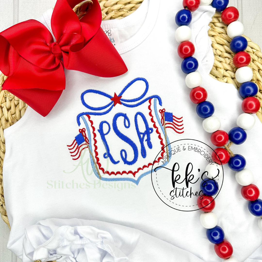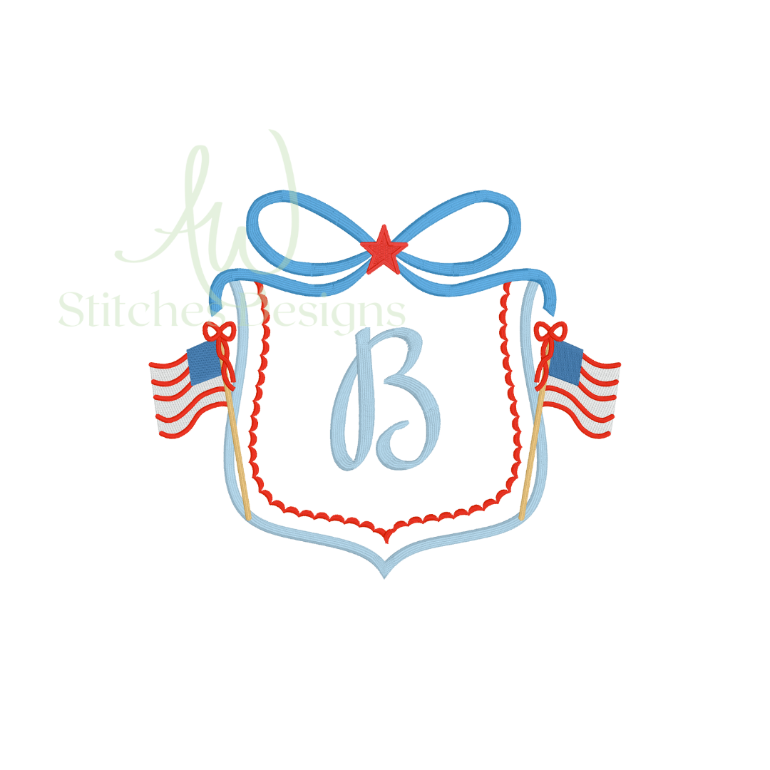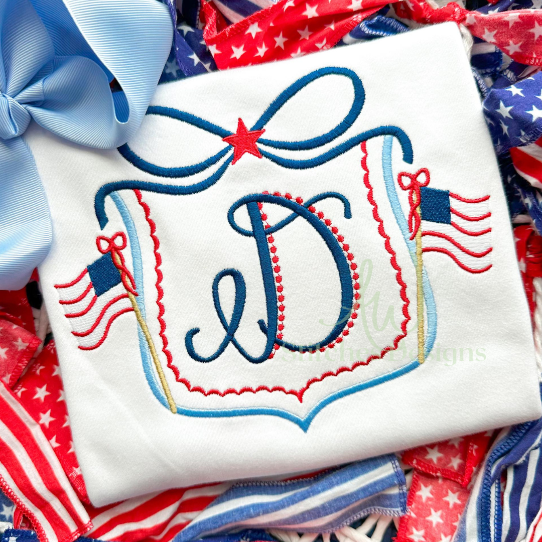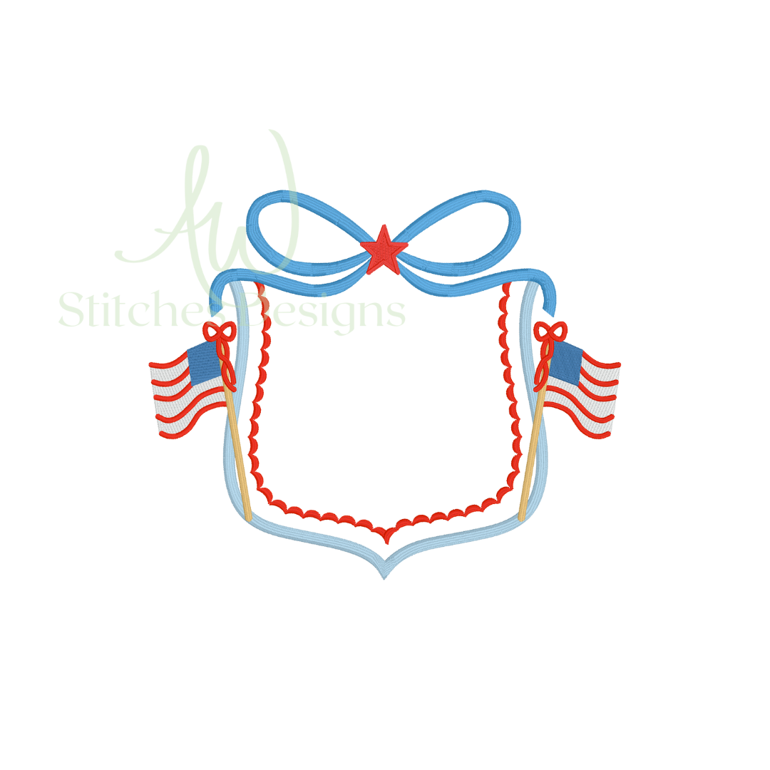 Patriotic Flag Bow Crest Monogram Frame Embroidery Design File is included in this download.