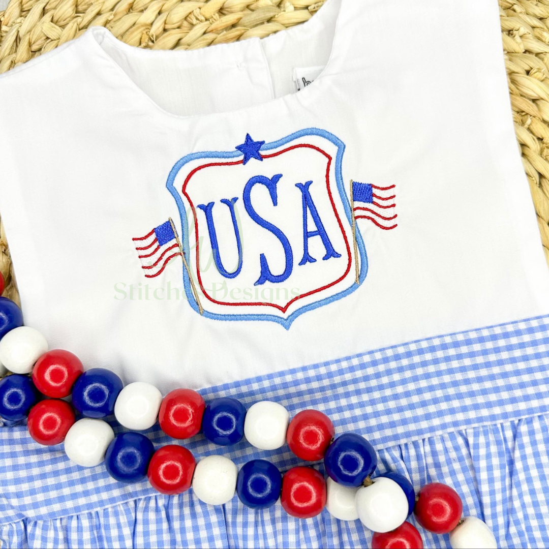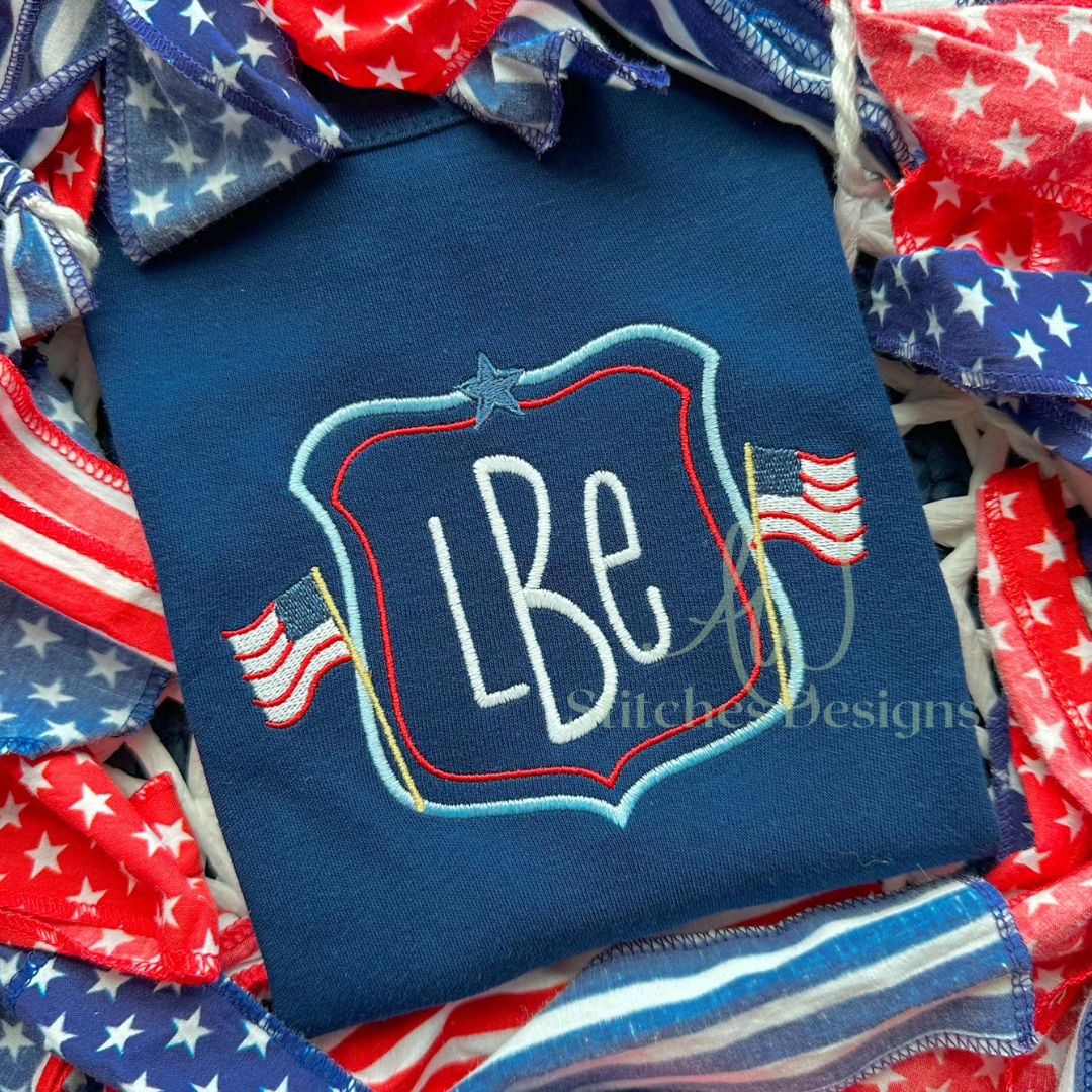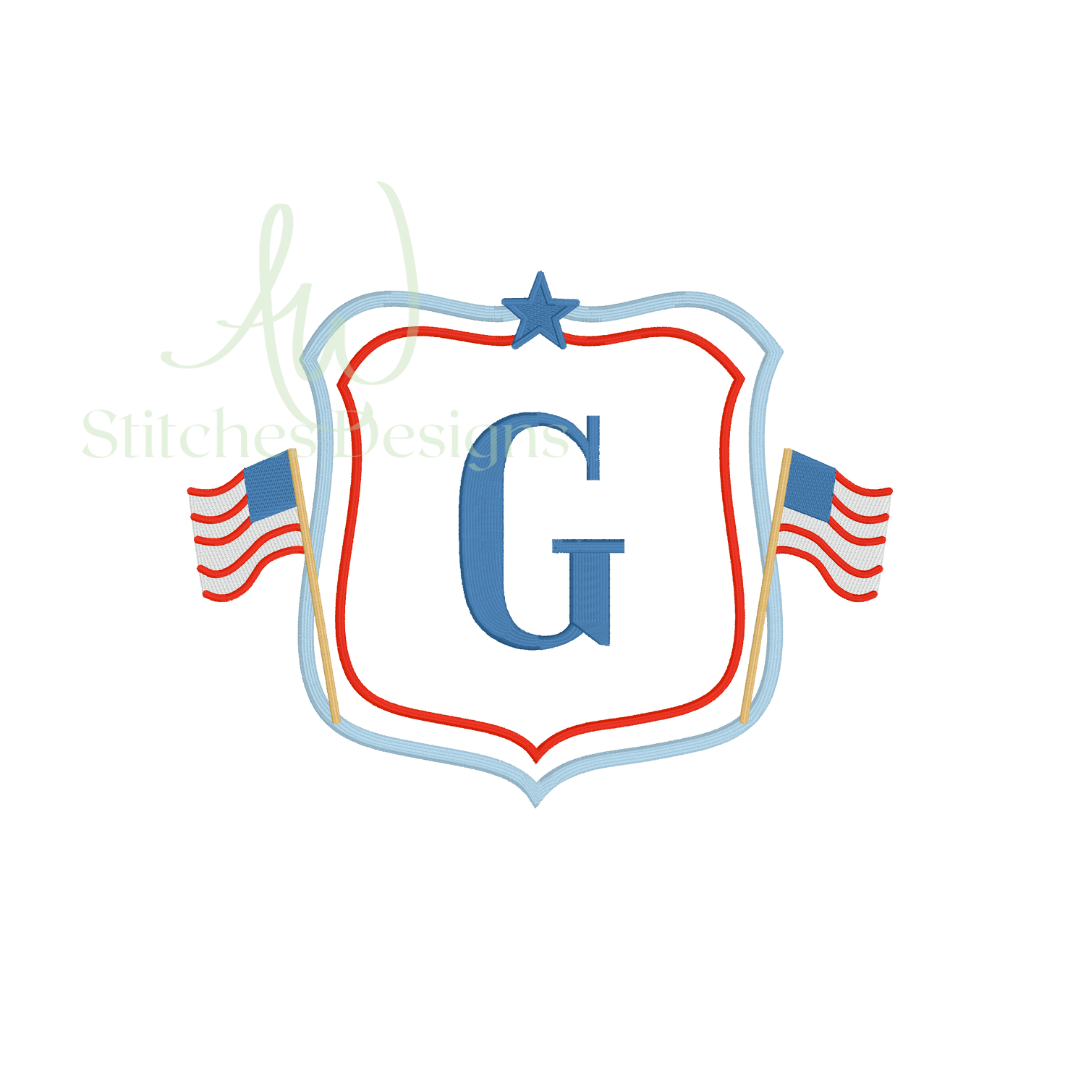 Patriotic Flag Crest Monogram Frame Embroidery Design File is included in this download.