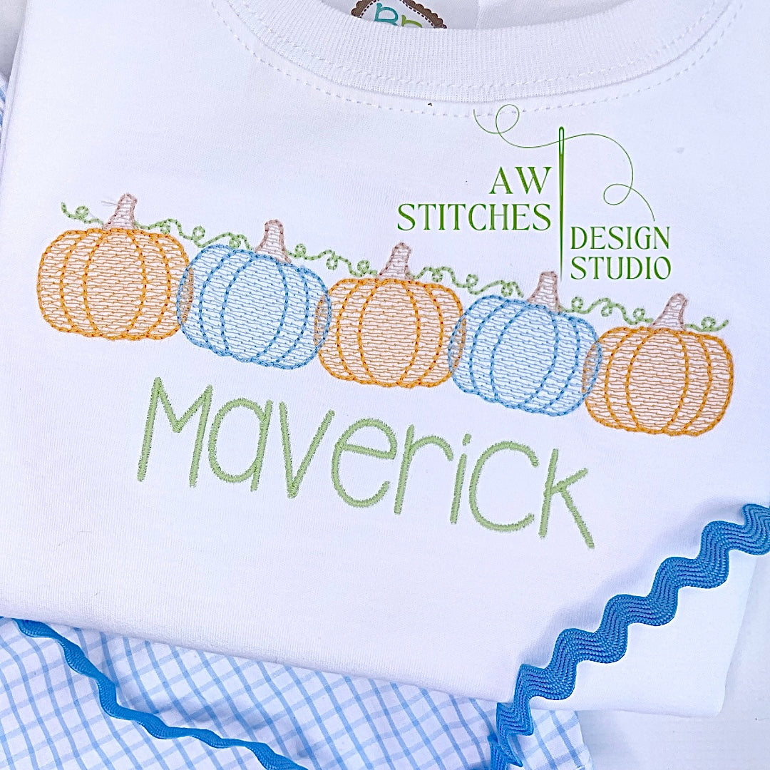 Pumpkin trio overlap pumpkins pumpkin vine vintage stitch, sketch stitch, bean stitch, machine embroidery design file is included in this download.