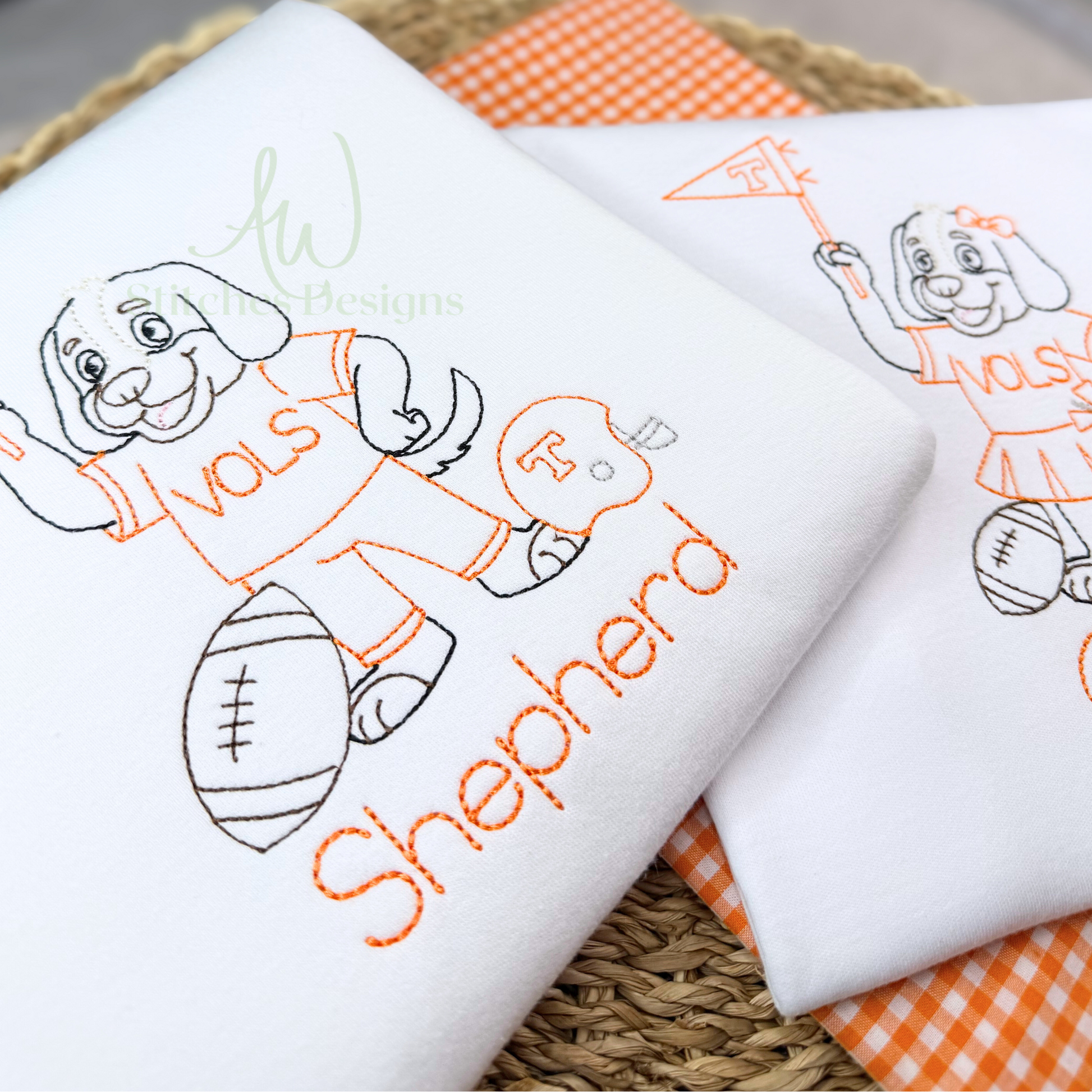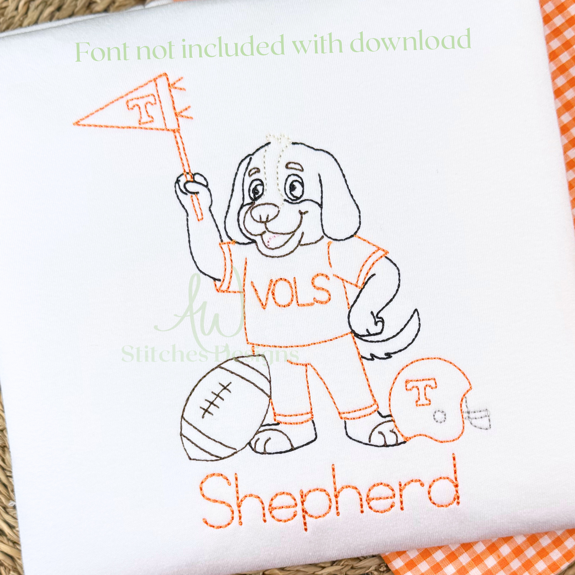 Tennessee Football Embroidery Design, Game Day Football Design, Hound Dog vintage bean stitch machine embroidery design file is included in this download.