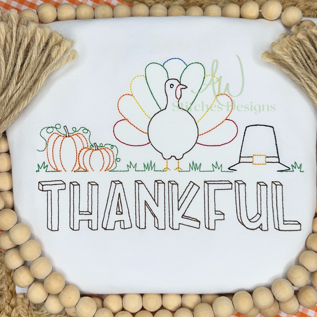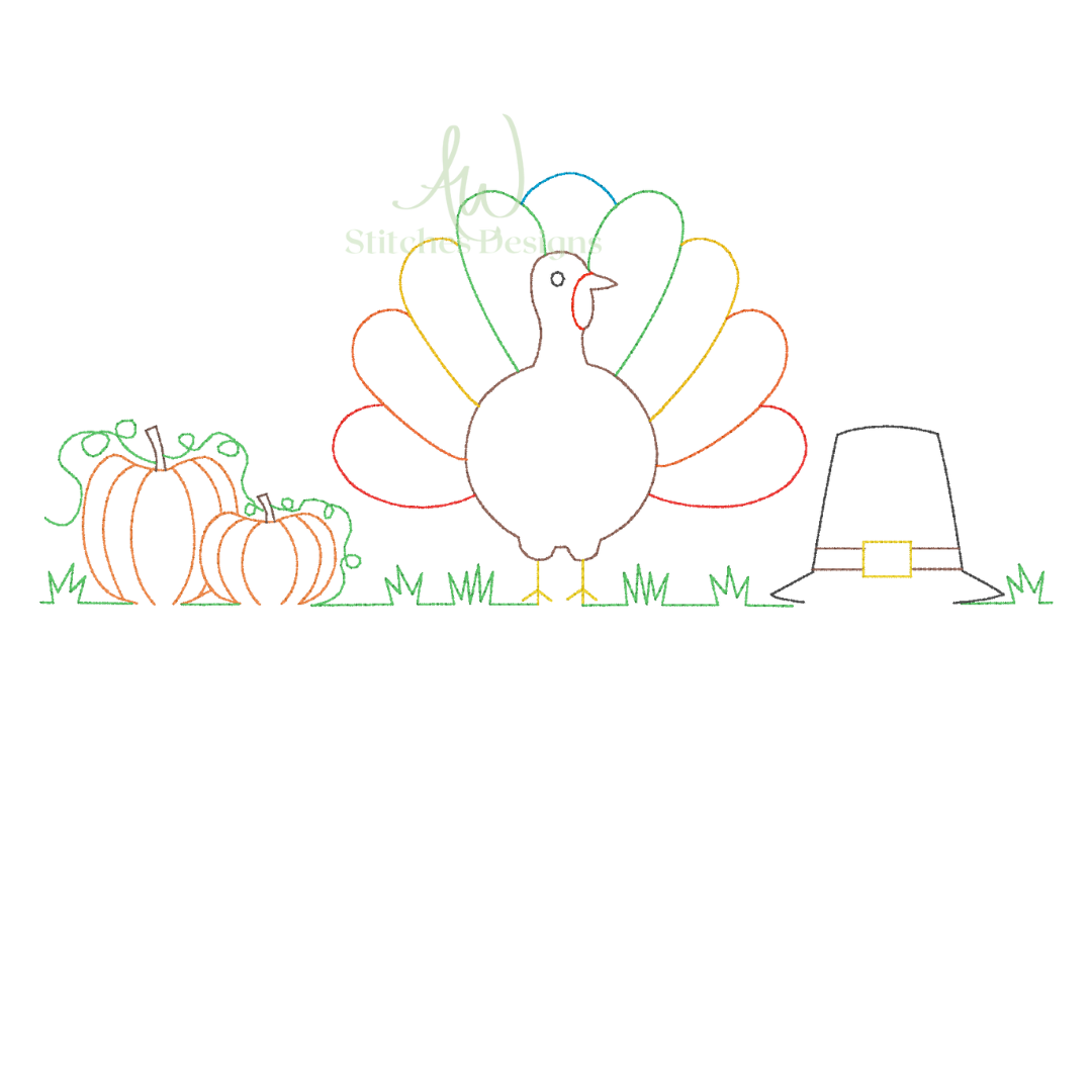 Turkey Thanksgiving pumpkin harvest line bean stitch vintage stitch quick stitch machine embroidery design file is included in this download.