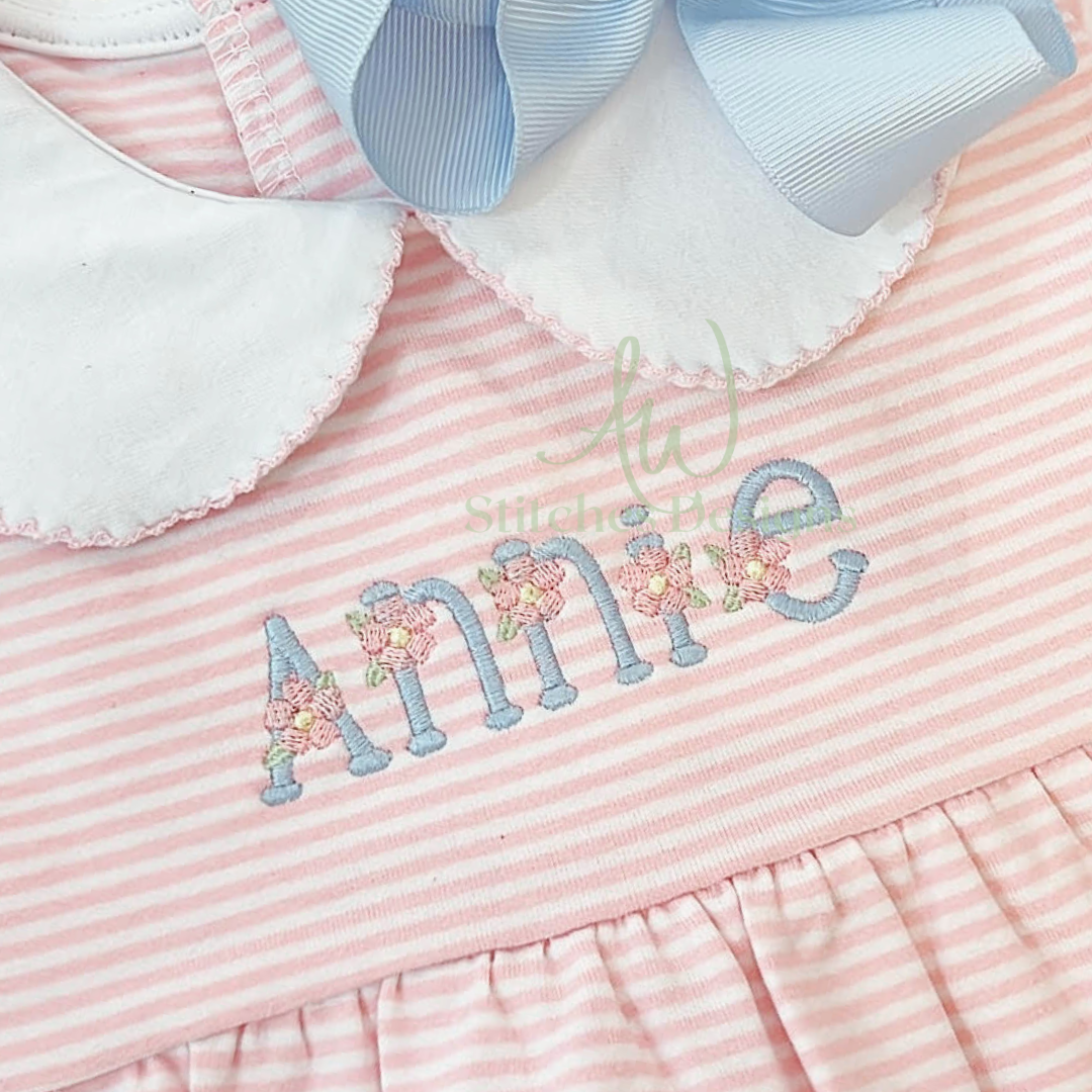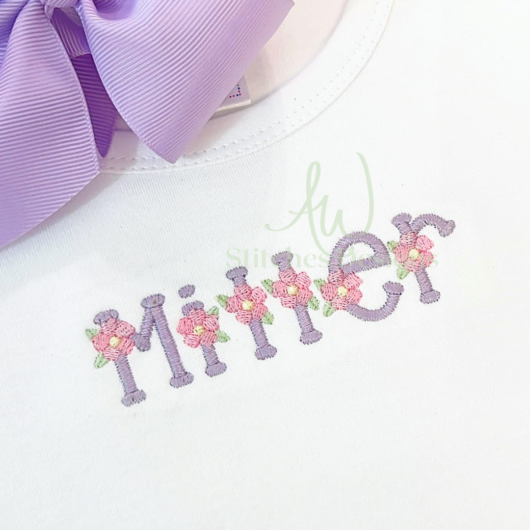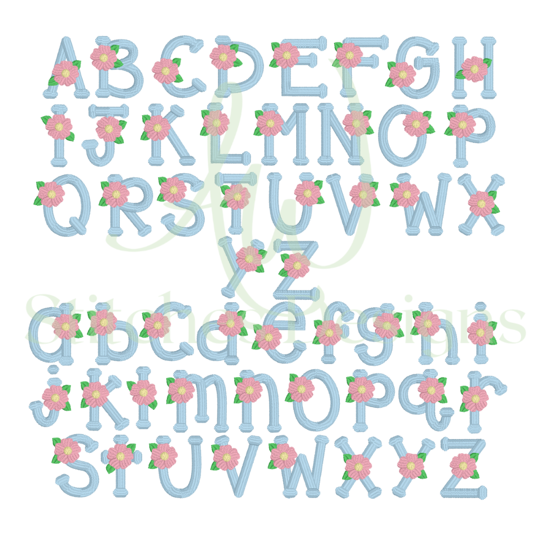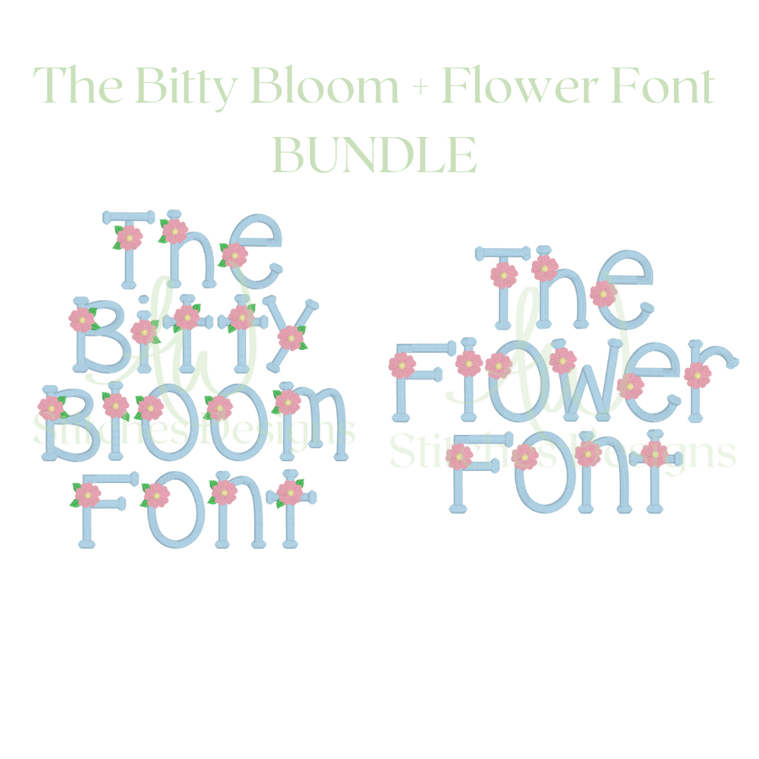 The bitty bloom satin stitch font & the flower font satin font BUNDLE for machine embroidery design file is included in this download.