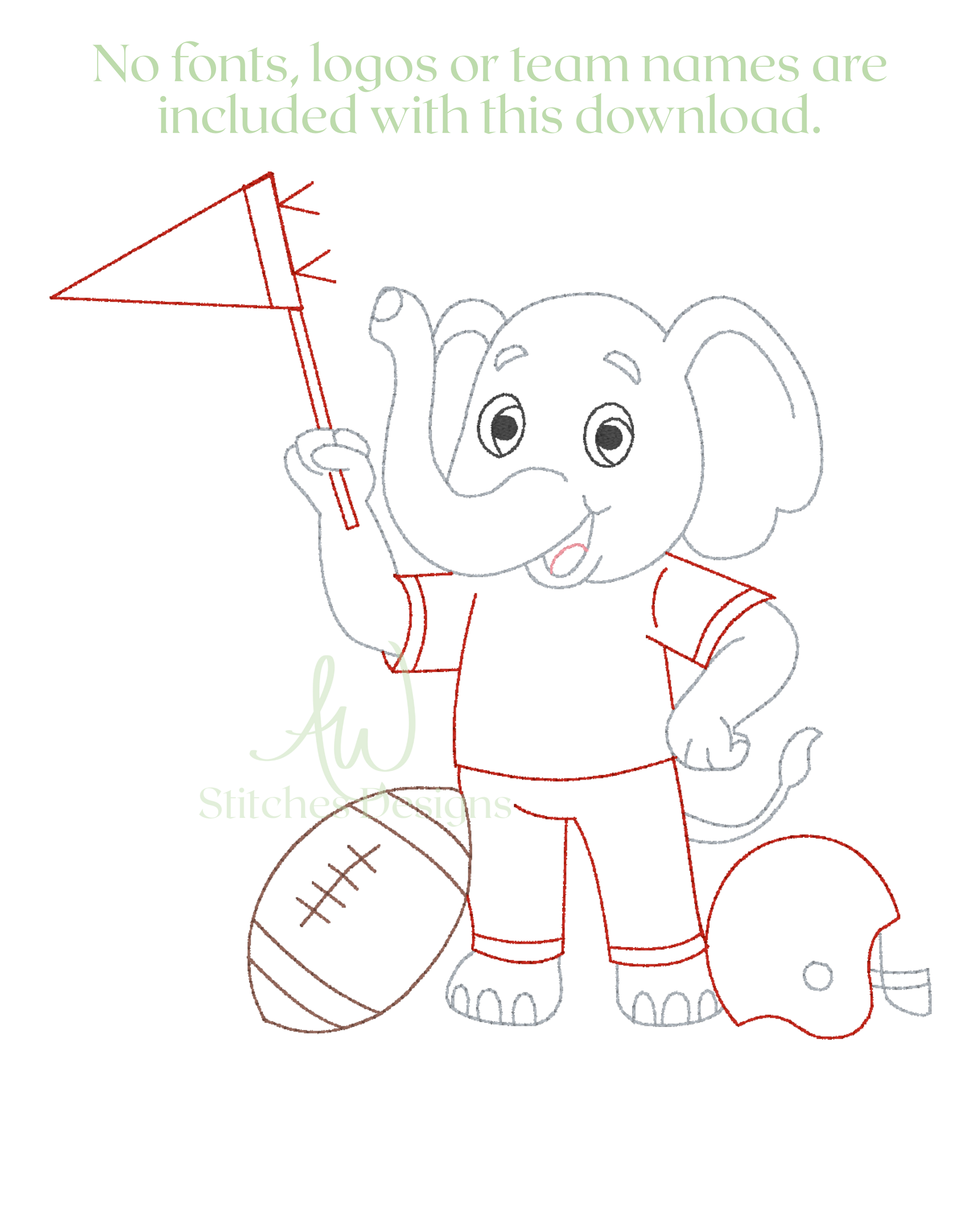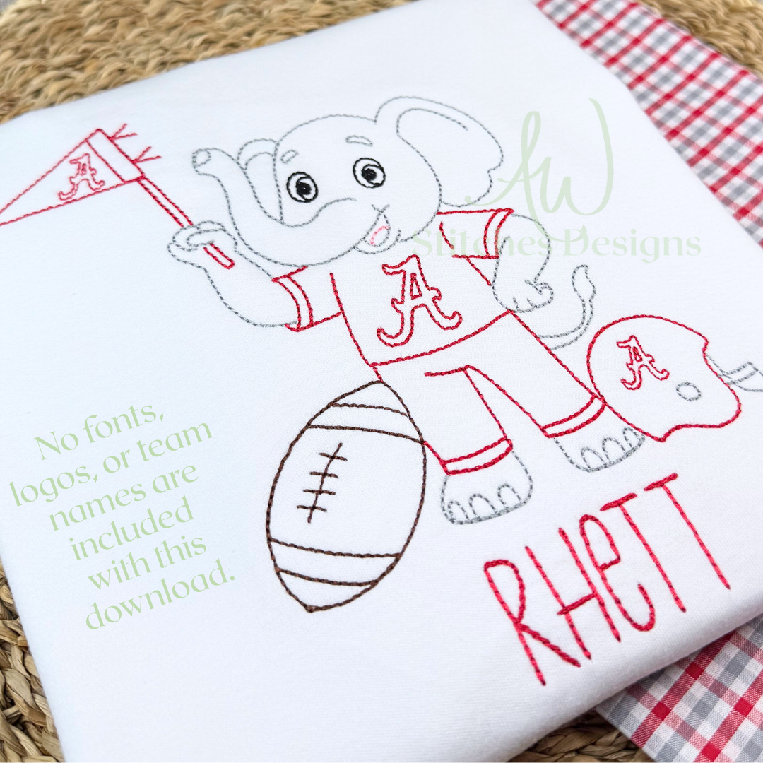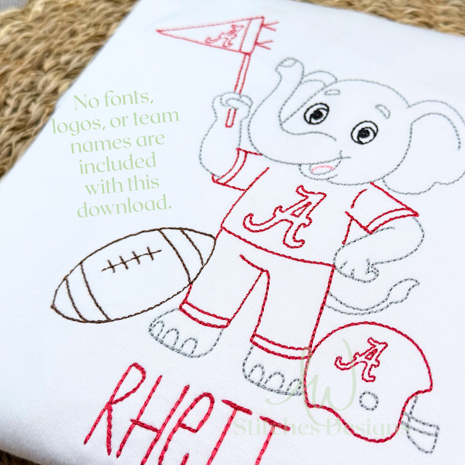 Alabama Football Embroidery Design, Game Day Football Design, Elephant vintage bean stitch machine embroidery design file is included in this download.