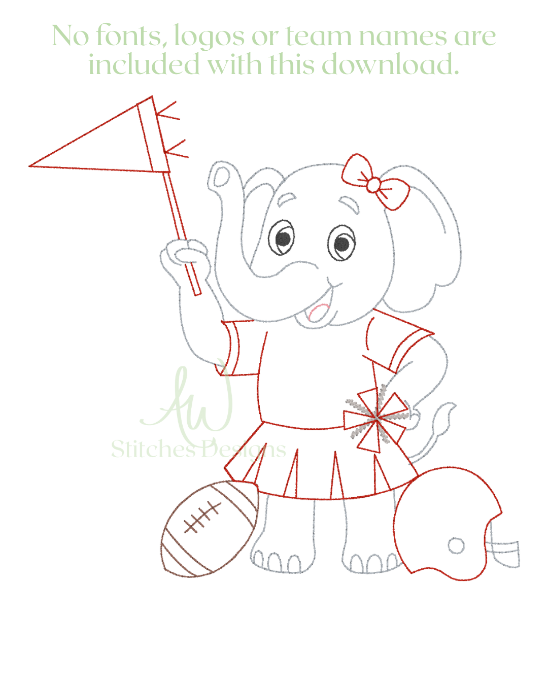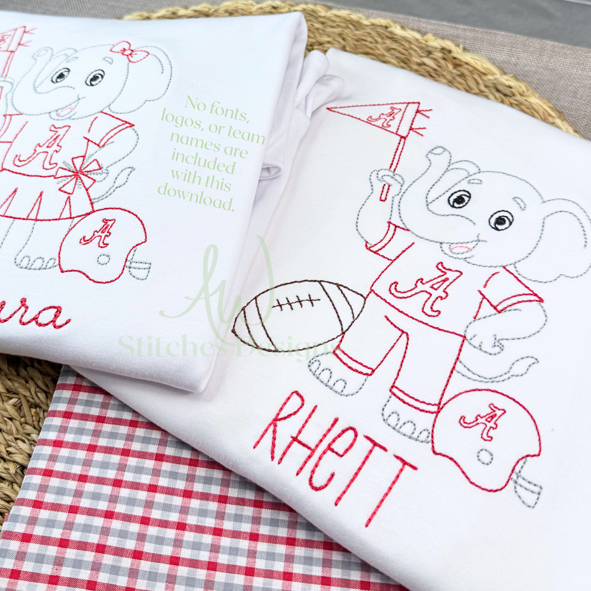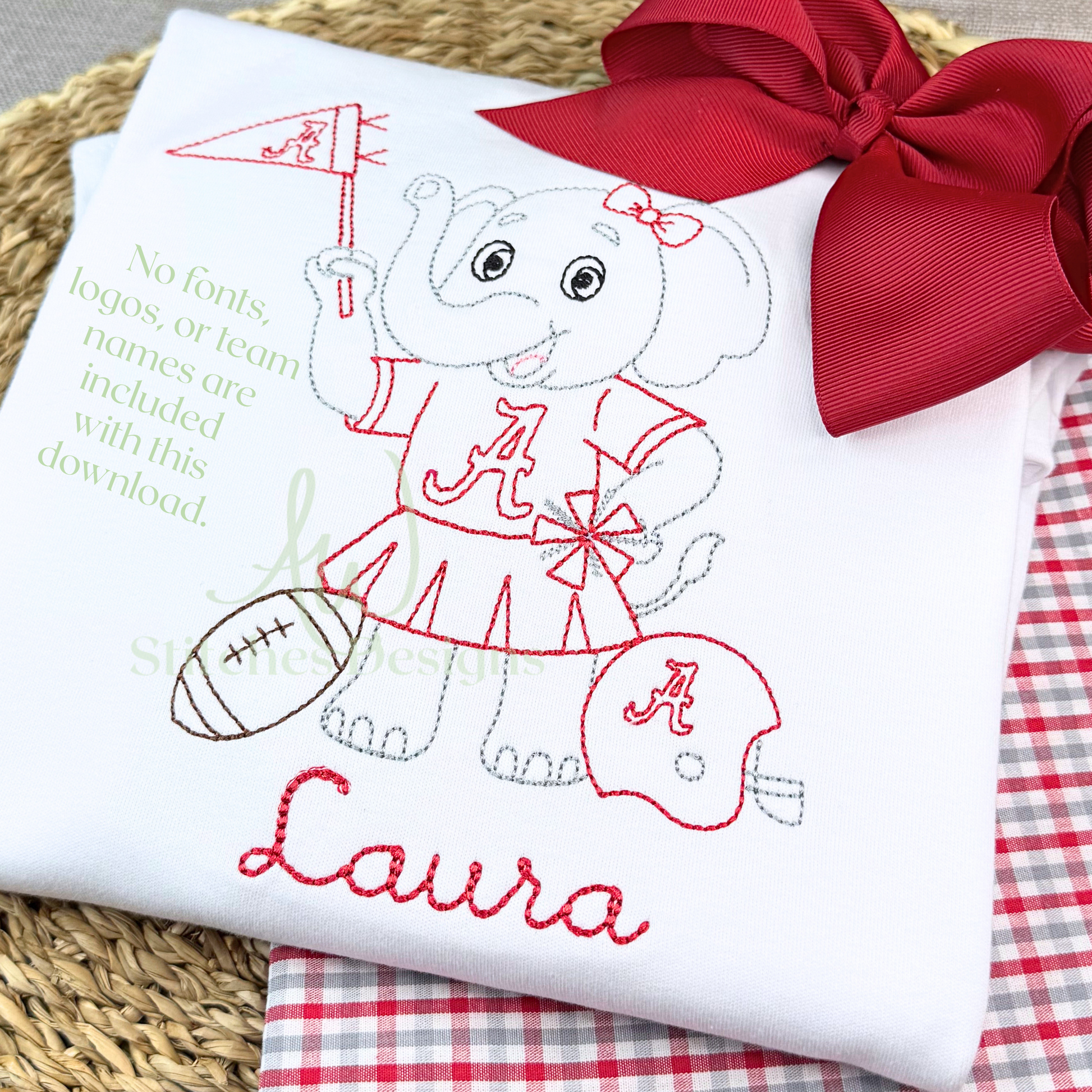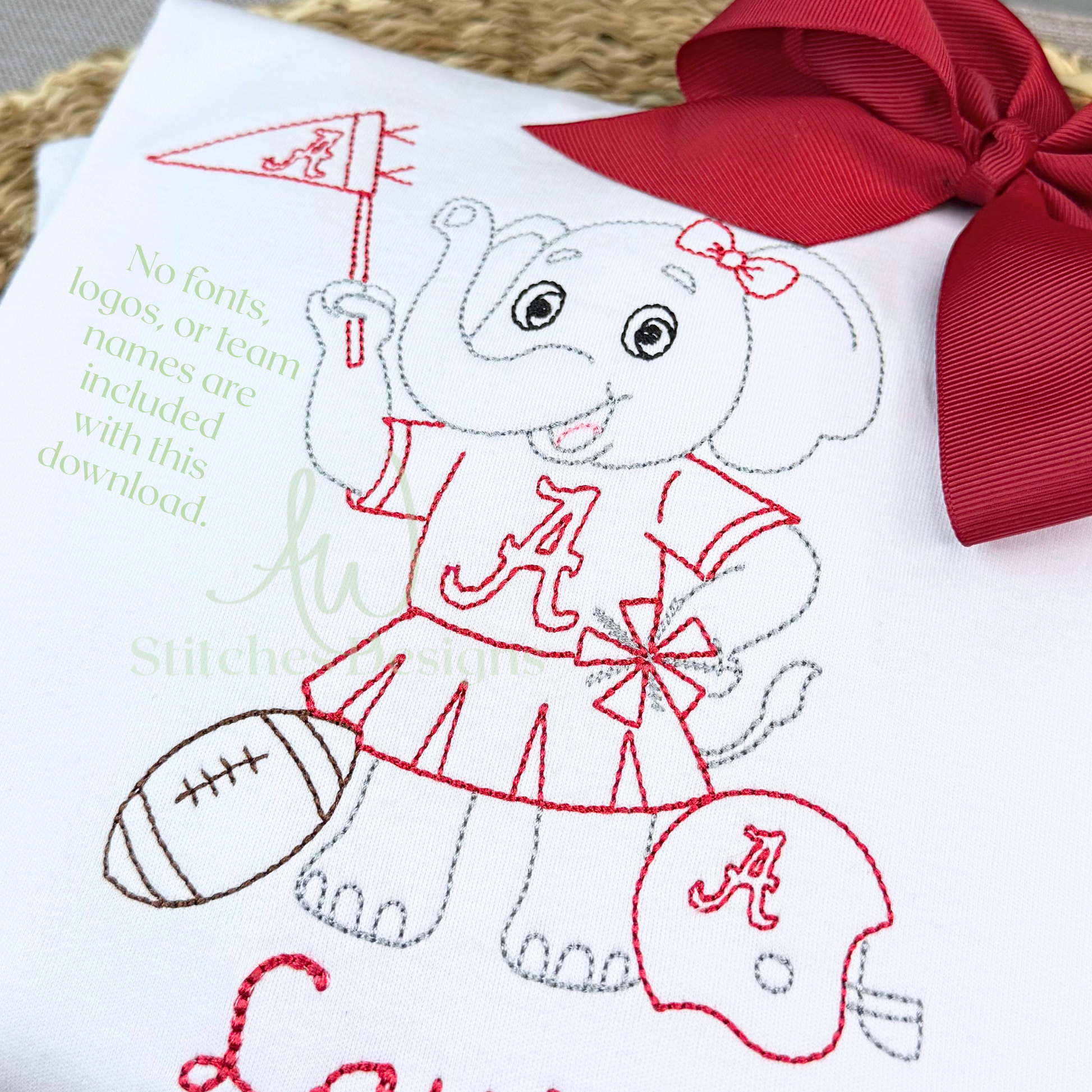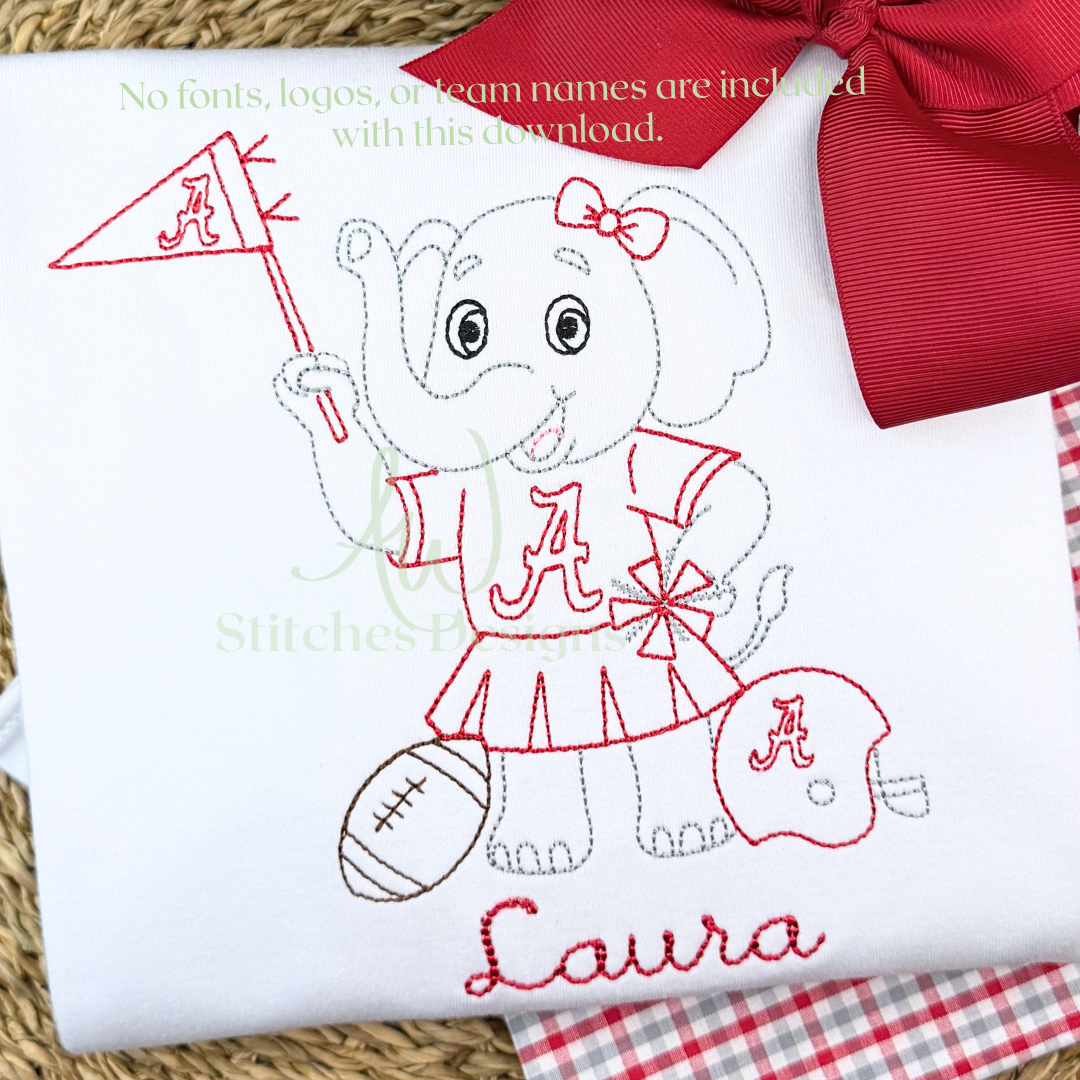 Alabama Football Bow Embroidery Design, Game Day Bow Football Design, Elephant with Bow vintage stitch machine embroidery design file is included in this download.
