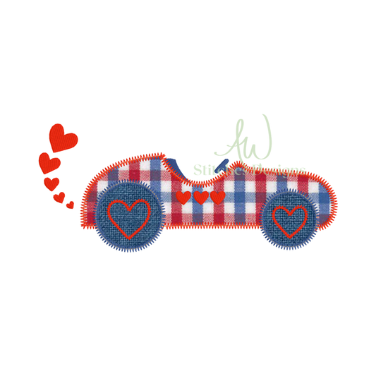 Valentine Heart Racecar Applique Embroidery Design
